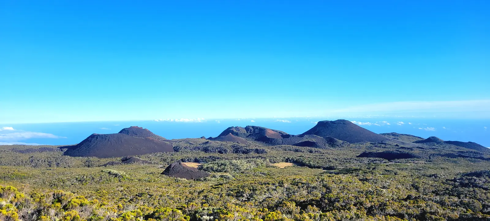 Vue du volcan depuis les hauteurs de la Caldera, du relais du Pas de Bellecombe, et depuis le bord du cratère.